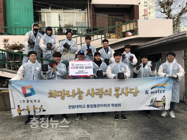 국립 한밭대학교(총장 송하영)는 통합물관리학과 학생들이 지난 20일 오전 대전 중구 대사동 쪽방촌을 찾아 ‘사랑의 연탄 봉사’ 활동을 실시했다고 밝혔다.