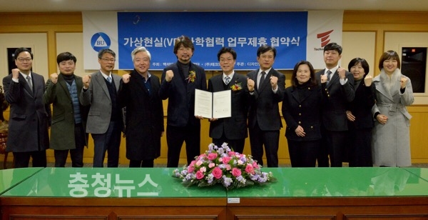 백석대학교(총장 장종현) 디자인영상학부는 23일 오후 11시, 교내 자유관 회의실에서 산학협력협정을 체결했다. 이번 협정으로 양 기관은 국제화 및 디자인ㆍ영상, 특히 가상현실(VR) 분야 발전을 위해 상호 협력한다.