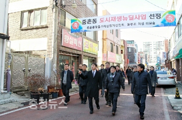 이 권한대행은 중구지역 뉴딜사업 대상지 ‘대전 중심 중촌(中村), 주민 맞춤으로 재생 날개 짓’사업 현장인 중촌동으로 자리를 옮겨 추진계획을 청취하고 현장을 둘러봤다.
