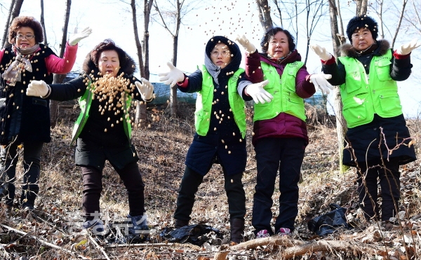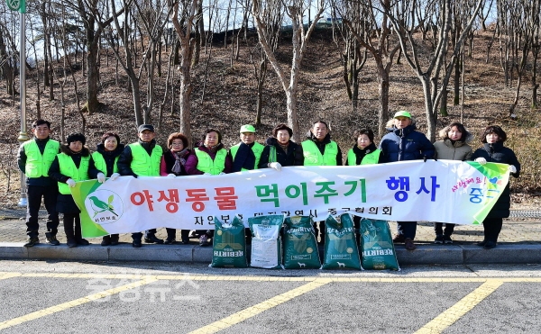 (사)자연보호중앙연맹 대전광역시 중구협의회(회장 김성배) 주관으로 회원 30여명이 참여해 산기슭 곳곳에 사료 등 200kg의 먹이를 놓았다.