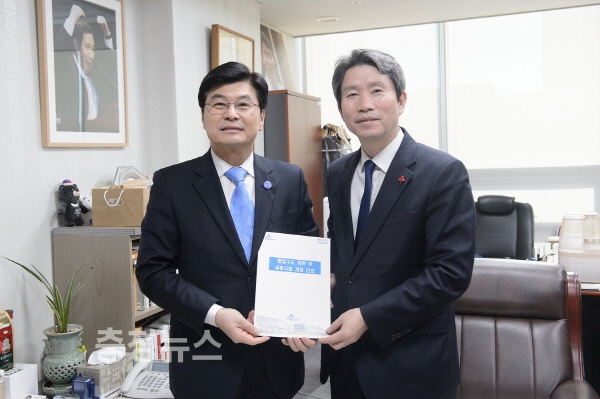 이춘희 세종시장은 23일 지역 현안사업인 행정수도 개헌과 세종시법 개정(의원 정수 확대)을 위해 더불어민주당 우원식 원내대표와 이인영 국회의원(헌법개정소위원장)을 차례로 방문했다.