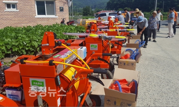 시는 농작업 안전시범사업으로 세척기, 방제기, 운반차와 같은 편이장비를 도입했고, 충남농원기술원이 지난해 실시한 농작업 안전시범사업 성분분석 결과에 따르면, 자각성 피로증상 호소율은 사업전 85.1%에서 39.6%로 53.5%, 생산성 향상도(연간 작업시간)는 도입 전 207시간에서 125.5시간으로 39.4%가 향상된 것으로 나타났다는 것이다.