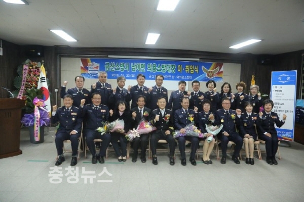 충남 금산군 남이면사무소(면장 김현태)는 지난 23일 남이면사무소 2층 회의실에서 남·여의용소방대장의 이·취임식 행사를 가졌다.