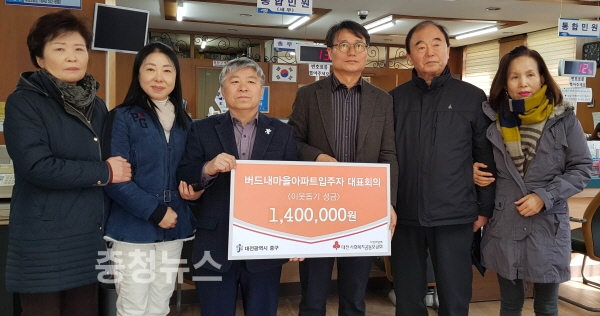 대전 중구 태평동에 위치한 버드내마을아파트1단지 입주자대표회(회장 김천석)에서 25일 1백 4십만원의 이웃돕기 성금을 태평2동 주민센터에 기탁했다.