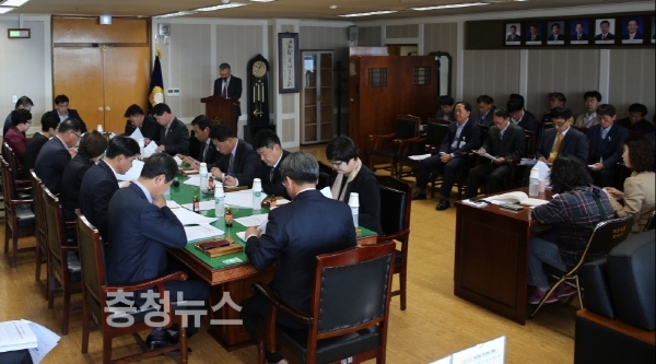 이번 의원회의 집행부 안건으로 정책기획담당관의 ▲「천안아산 행정협의회」제7차 정기회의 결과 보고와 ▲ 천안아산 KTX역세권 R&D집적지구 조성, 예산법무담당관의 ▲ 친환경에너지 비닐하우스단지 수탁자 선정을 위한 민간위탁심의위원회 위원 추천, 자치행정과의 ▲「한국인권도시지방정부협의회」운영규약 동의안 의회 상정, 사회적경제과의