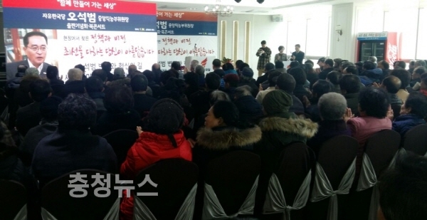 오는 6월 지방선거에서 자유한국당 소속으로 홍성군수 출마를 선언한 오석범 전 홍성군 군의회의원(홍주지명되찾기범군민운동본부장)이 지난 24일 내포신도시 J컨벤션웨딩홀에서 북콘서를 열었다.