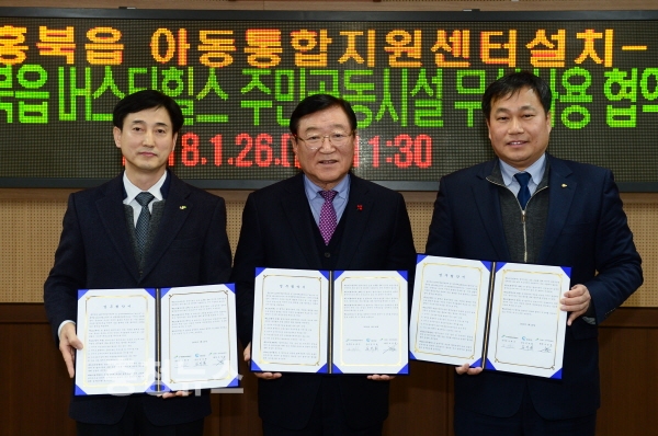 26일, 홍성군청 회의실에서 홍북읍 아동통합지원센터 설립을 위한 홍북읍 LH스타힐스 주민공동시설 무상사용 협약식이 개최됐다.