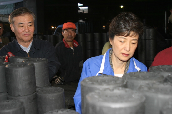 한나라당 박근혜 대표가 대덕구 신대동 육림연탄공장을 찾아 민생 현장을 방문했다 박 대표는 직접 차량에 연탄을 차량에 옮겨 담고 현장 직원들과 이야기를 나눴다.
