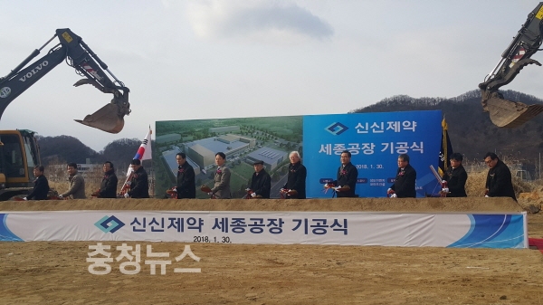신신제약은 30일 세종첨단산업단지에서 세종시 이귀현 경제산업국장과 신신제약 김한기 대표를 비롯, 관계 공무원과 신신제약 관계자 등이 참석한 가운데 기공식을 가졌다.