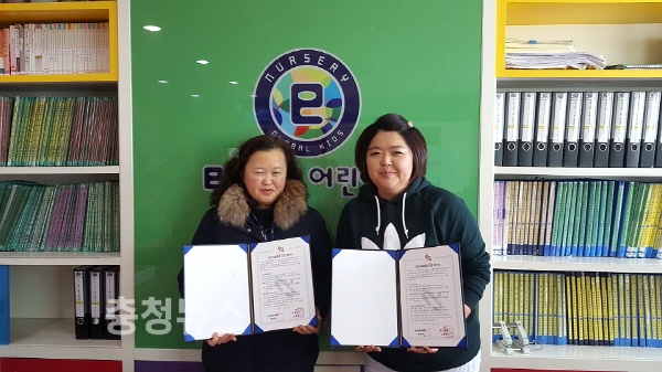 여성친화 일촌기업협약사진(12월 5일 e아이어린이집 사진 오른쪽 현효진 원장 왼쪽 당진시 여성가족과 차수진 여성능력개발팀장).