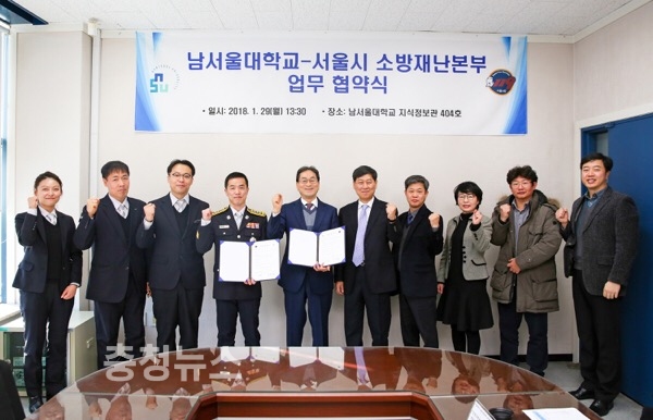 남서울대학교(총장 공정자) 가상증강현실센터와 서울시 소방재난본부 재난현장 지휘역량강화센터는 가상현실 재난구조 솔루션 개발을 위해 29일 업무협약을 체결했다.