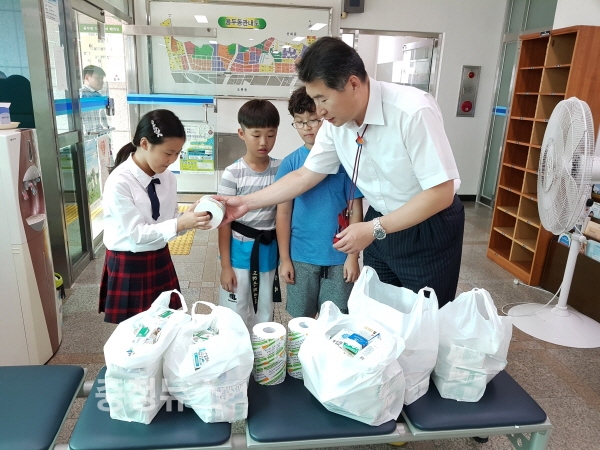 대전 중구(구청장 박용갑)는 올해 종이팩과 교환 예정인 4000개의 두루마리 화장지 공급을 마쳤다고 30일 밝혔다.