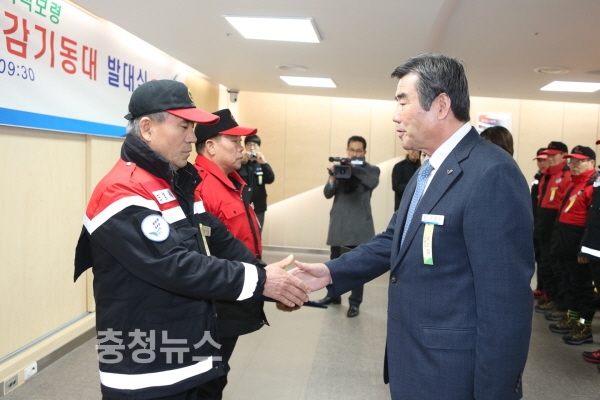 산불전문진화대 및 산감기동대 발대식에서 당부의 말을 하고 있는 김동일 보령시장