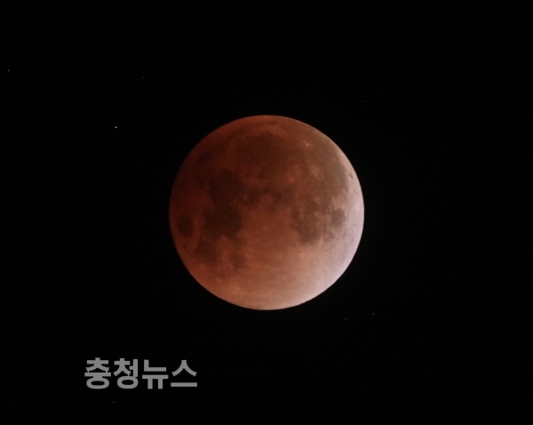 칠갑산천문대에서는 밤 9시 40분쯤 구름이 걷히기 시작하면서 개기월식으로 인해 어두운 붉은빛을 띠는 선명한 ‘블러드 문’ 현상을 관측할 수 있었다.