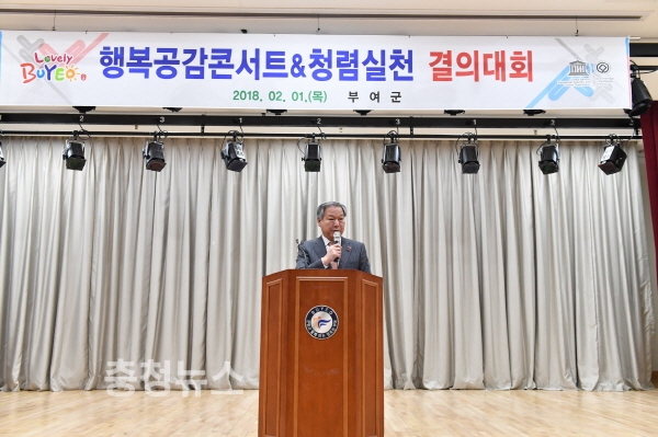 이날 이용우 부여군수는 “2018년 군정기조를 ‘지속가능한 부여발전’으로 선정하고, 역사를 품은 깨끗한 문화도시, 약진하는 경제도시, 공존과 상생의 도시, 4차 산업혁명 선도 도시 건설에 최선을 다하겠다”라고 강조하며, 역점 추진사업을 중심으로 군민과 공직자가 함께 지혜와 힘을 모아 추진해 달라고 요청했다.