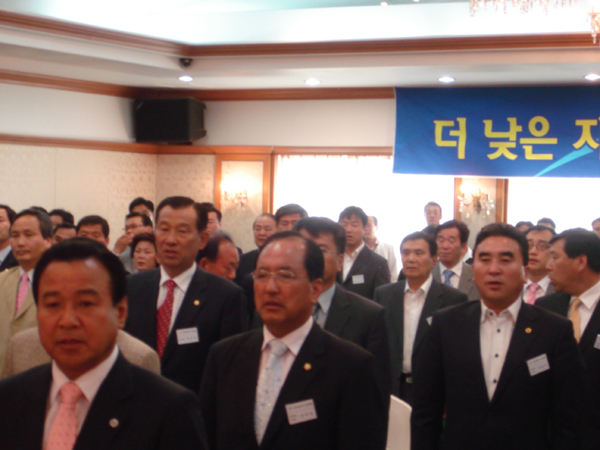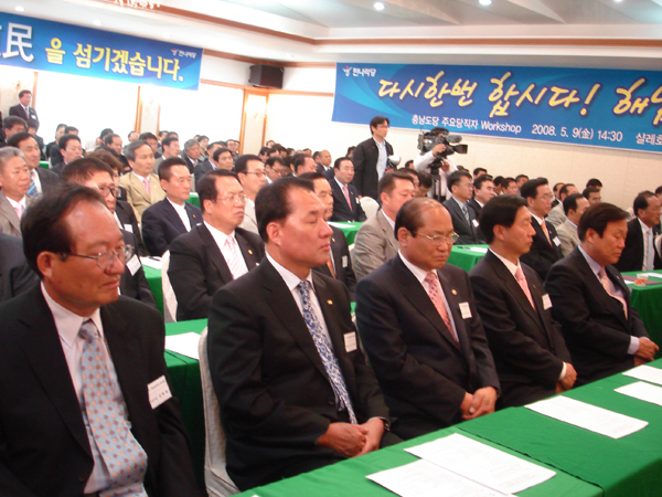 한나라당 소속이 이쯤 되면 분명 충청남도는 한나라당이 주도세력이다. 도의원 시의원 등 모두가 충청에서 압도적이기 때문에 책임감을 느껴야 충남의 발전은 우리가 이끌어야 한다고 당부했다.