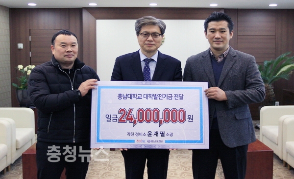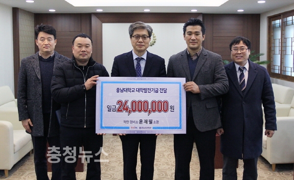윤재필 대표는 “충남대 졸업생으로서 항상 모교 발전에 관심을 가져왔다”며 “비록 많지 않은 금액이지만 저의 작은 행동이 대학 발전에 작은 디딤돌이 되었으면 좋겠다”고 말했다.