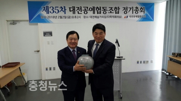 김경시 대전시의회 부의장이 공예협동조합으로부터 도자기에 감사의 마음을 표시한 '감사호'를 받았다.