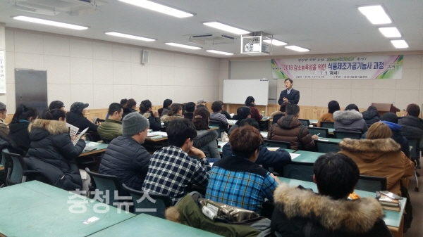 충남 논산시농업기술센터(소장 장익희)는 지난달 31일 31명의 강소농경영체를 대상으로 ‘식품가공기능사’ 자격증 과정을 개강하고, 농식품가공 전문가 양성에 힘찬 시동을 걸었다.