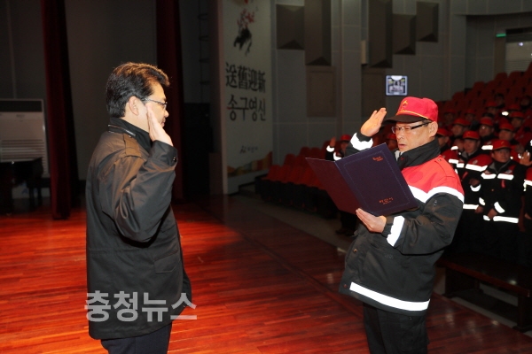 복기왕 아산시장은 인사말을 통해 지금까지 아산관내 푸른산림의 관리에 힘써주신 관계자들에게 치하를 전달함과 동시에 한순간의 산불로 이 모든 것이 수포로 돌아갈 수 있으니 산불예방활동을 다시 한 번 더 강조하면서 “이를 지키고, 가꾸는 일 또한 그 무엇보다 중요한 사항으로 진화대원 및 감시원들의 역할의 중요성을 인식해 적극적인 자세로 감시활동 등에 임해 줄 것”을 당부했다.