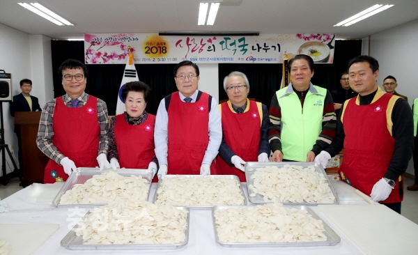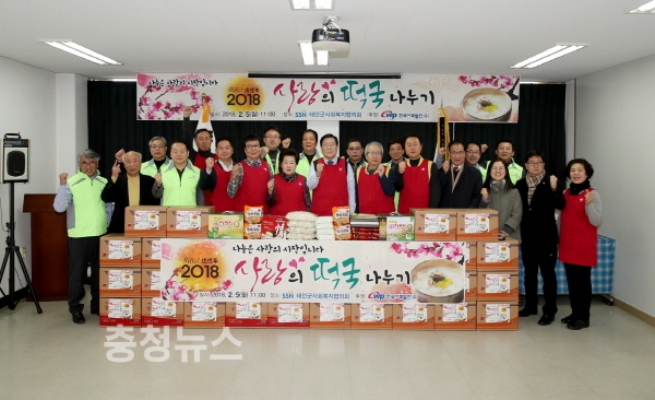 태안군 사회복지협의회(회장 오병영)는 지난 5일 태안읍 사회복지협의회 사무실에서 한상기 군수와 한국서부발전(주) 관계자, 관내 사회복지기관장, 사회복지협의회 임원 및 회원 등 50여 명이 참여한 가운데 ‘사랑의 떡국 나누기’ 행사를 마련했다.