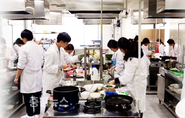 한남대 식품영양학과 학생들이 조리실습을 하고 있는 모습.