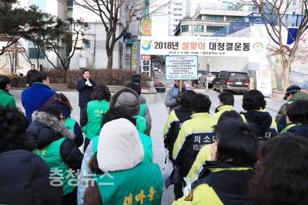 대전 서구(구청장 장종태)는 설 명절을 맞이해 6일 갤러리아타임월드 주변에서 ‘설맞이 대청결 운동’을 전개했다.