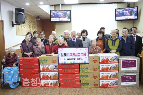 (주)금성백조주택(회장 정성욱)이 설을 앞두고 따뜻한 이웃사랑을 실천하고자 대전지역 내 복지시설(평화의마을 아동복지센터, 성애노인요양원, 성심보육원) 세 곳을 방문해 과일, 의류 등 정성이 담긴 선물을 전달하고 따뜻한 마음을 나누었다.