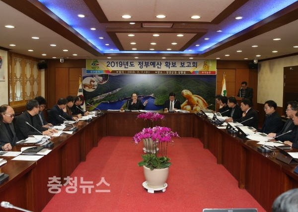 군은 7일 군청 상황실에서 이석화 군수를 비롯한 각 부서장 및 주무팀장 50여명이 참석한 가운데 2019년도 정부예산 확보 보고회를 개최했다.