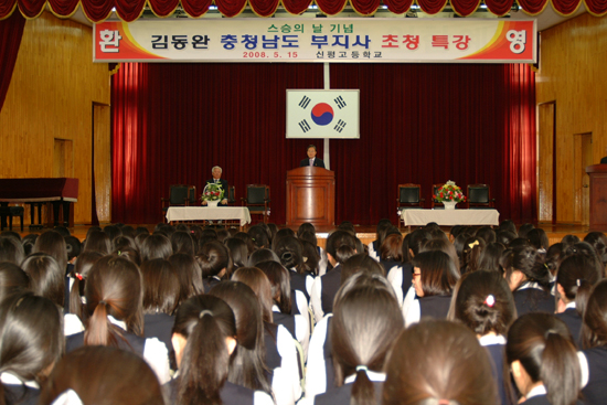 충청남도 김동완 행정부지사가 5월 15일 고향인 당진 신평 고등학교 명예 1일 교사로 참석했다.