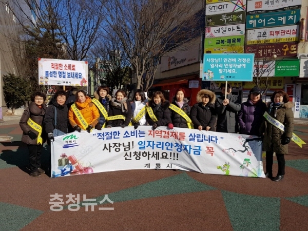 또 설 명절 기간 중 외식업소 이용을 촉진하고 관내 소비유도를 위해 계룡사랑상품권 이용 안내와 더불어 최근 정부에서 핵심과제로 추진하고 있는 일자리안정자금 정책을 관내 상가 등을 직접 방문하며 적극적인 홍보활동을 펼쳤다.