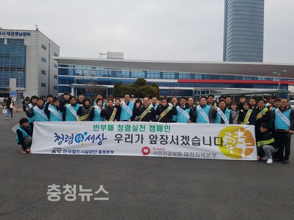 한국철도시설공단 충청본부(본부장 이동렬)는 설 연휴를 앞둔 9일 대전역에서 국민건강보험공단 대전지역본부와 합동으로 ‘청렴·안전 캠페인’을 개최했다고 밝혔다.
