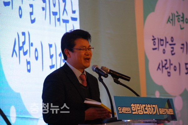 아산시장 출마를 선언한 오세현 전 아산시 부시장이 10일 자신의 저서 '희망 더하기' 출판기념회에서 "아산시민들과 함께 아산에 희망을 만들고, 아산에 희망을 나누고, 아산에 희망을 키우는 아산의 아들로 살겠다"고 다짐했다.