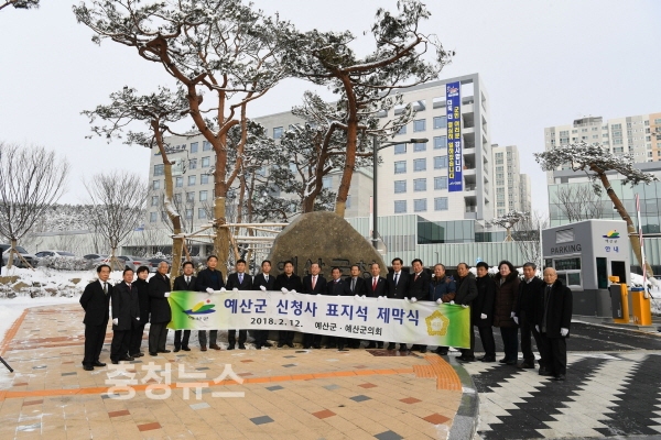 신청사 표지석 제막식에는 황선봉 군수, 권국상 군의회의장 및 군의원, 도의원, 기관단체장이 참석해 군청 및 의회 표지석 제막식을 개최했다. 이날 제막한 표지석은 예산군의 발전을 기원하며 예산읍 김계배씨가 기증한 것으로 알려졌다. 제막식은 별도의 의식행사 없이 군청사 표지석 제막, 군의회 청사 표지석 제막 후 청사안내 및 설명으로 마무리됐다.