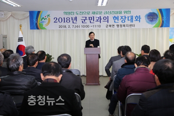 박 군수는 현장에서 군정의 성과와 2018년 군정 현안사업, 해당 읍면 사업 등에 대해 주민에게 소상하게 설명하고 생활불편 사항 및 애로사항 등 주민들에게 절실히 요구되는 건의에 적극적인 해결의지를 피력했다.