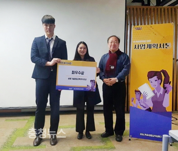 한남대(총장 이덕훈)는 KAIST 기술창업교육센터에서 주관한 ‘Business Plan-A-Thon’ 경진대회에 참여한 서현웅(경영학과 3학년), 김나은(디자인학부 3학년)학생이 최우수상을 수상했다고 13일 밝혔다.
