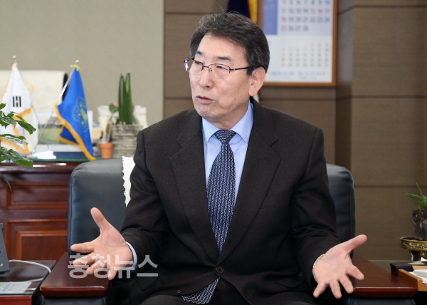 인터뷰하는 이종윤 당진시의회 의장 / 충청뉴스 최형순 기자