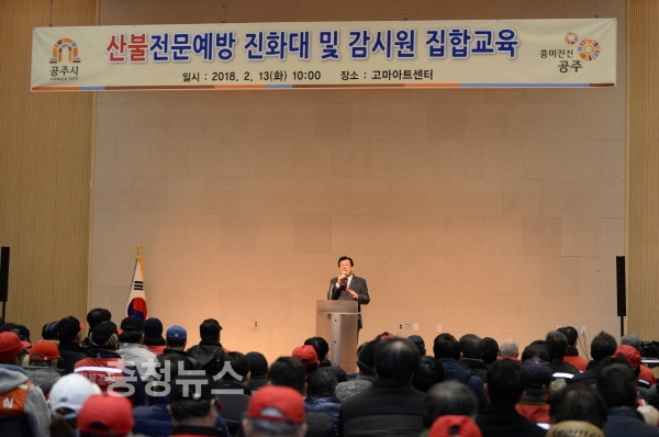 충남 공주시(시장 오시덕)가 산불조심 강조기간을 맞아 지난 13일 고마 컨벤션홀에서 산불전문예방진화대 및 감시원 등 200여명이 참석한 가운데 산불방지 교육을 실시했다고 밝혔다.