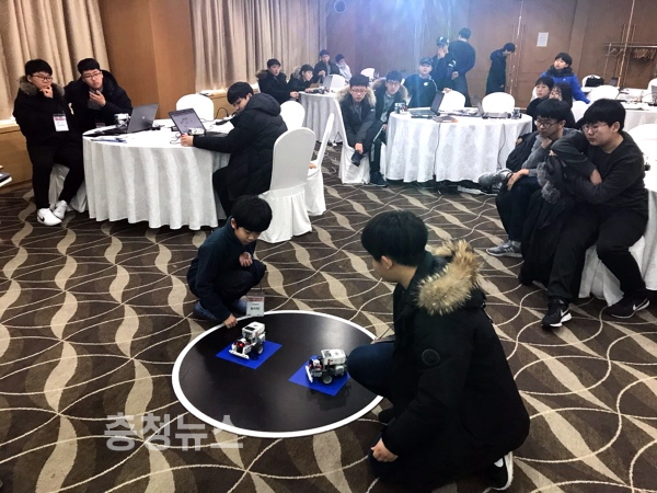 이어진 진로탐색 프로그램에서는 인공지능(AI)의 활용범위가 확대되고 점차 보편화 되고 있는 추세를 반영해 마련한 로봇 코딩과 조립 및 제어과정이 참가학생들로부터 큰 관심과 호응을 얻었다.