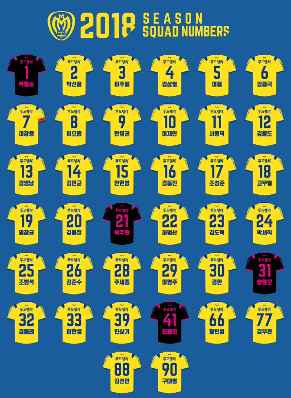 2018시즌 K리그2 에서 ‘노랑파란’을 일으킬 주인공들의 등번호가 공개됐다.