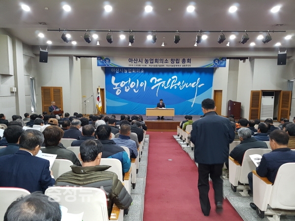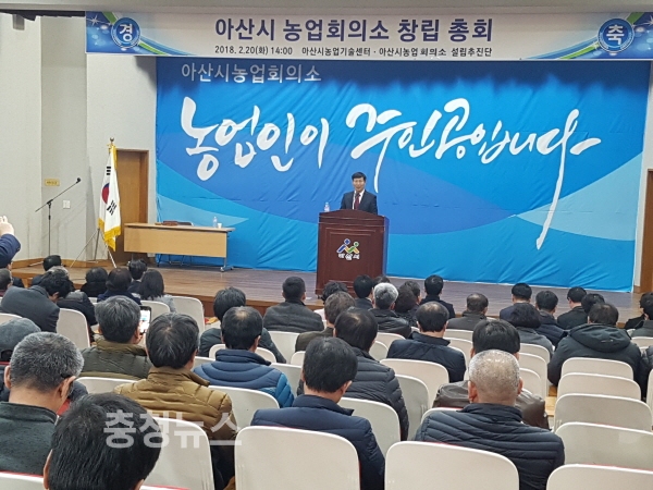 충남 아산시는 지난 20일 아산시 농업기술센터 지식농업관에서 아산시농업회의소 창립총회를 열고 회장과 부회장, 감사 등 임원을 선출하고 정관상의 사업계획을 통과시켰다.