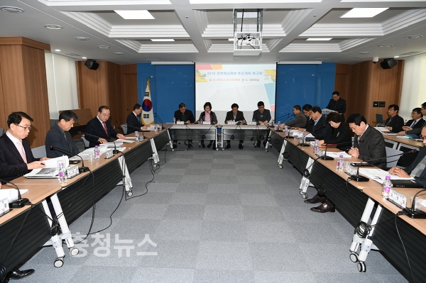 충남 예산군은 21일 군청 대회의실에서 황선봉 군수 주재로 각 부서장과 팀장 등 50여명이 참석한 가운데 2019 정부예산확보 추진계획 보고회를 가졌다.