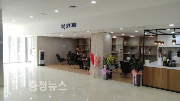 북카페 ‘책 읽는 쉼터’는 방문객 누구나 편안한 휴식과 문화적 혜택을 가질 수 있는 독서 테마 공간으로 민원인이 대기 시간을 이용해 독서 할 수 있는 공간을 마련해 건전한 여가활동 및 정보교류 등의 장소를 제공하고자 조성됐다.