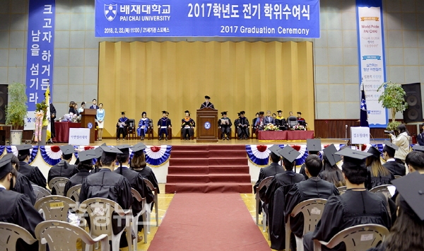 배재대학교(총장 김영호)는 22일 대학 스포렉스홀에서 ‘2017학년도 학위수여식’을 거행했다.