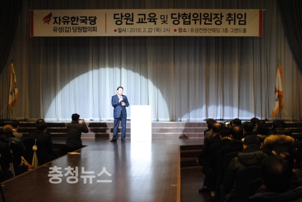 자유한국당 박성효 유성갑당협위원장이 취임식에서 이상민, 허태정 대전시장 예비후보자들에 대해 "일 한게 없다"고 싸잡아 성토하고 나서 눈길을 끌었다.