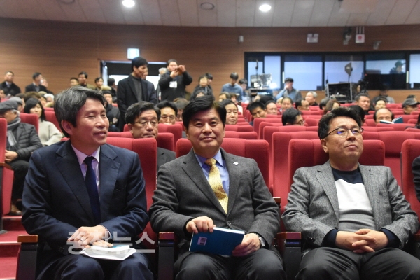 이밖에 충남지사 후보군인 박수현 전 대변인, 양승조 국회의원, 복기왕 전 아산시장이 각각 축사에 나서 저마다 인연을 언급하며 자신에 대한 지지도 간접적으로 호소했다.