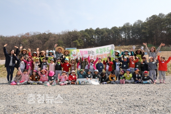 지난해 죽동 텃밭에서 진행된 어린이도시텃밭학교에 참여한 유치원생들 기념촬영