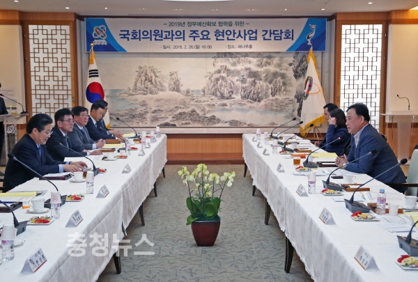 시는 지난 9일 2019년 정부예산 확보 대상 사업과 규모를 확정한데 이어 26일에는 지역구 국회의원과 보좌진을 시청으로 초청해 김홍장 시장 주재로 국비 확보방안을 논의하기 위한 간담회를 개최했다.