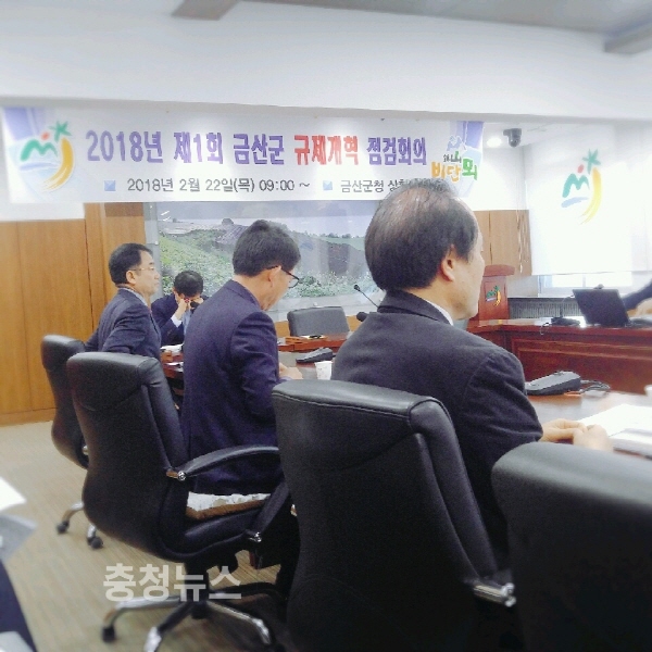 충남 금산군은 지방분권의 기조에 발맞춰 금산군 지역의 특성에 맞는 규제환경 조성을 위하여 ‘지방분권형 규제환경 조성과제 발굴’을 주제로 지난 22일 2018년 규제개혁 점검회의를 개최했다.
