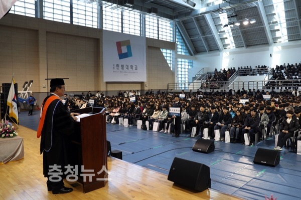 송하영 총장은 “한밭대에서 새롭게 출발하는 입학생들을 진심으로 환영하고 축하한다”며 “자신에게 주어진 삶을 가치 있게 만들기 위해 무엇을 어떻게 할지, 가능한 크게 멀리 보면서 인생의 목표를 준비하라”고 당부했다.